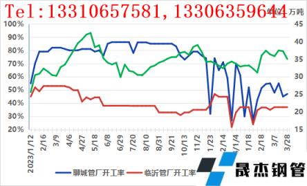 據(jù)網(wǎng)監(jiān)測數(shù)據(jù)顯示,截至28日山東臨沂、聊城、濰坊、煙臺地區(qū)21家樣本96條產(chǎn)線開工率46.65%,環(huán)比下降2.8%,成材庫存47.92萬噸,同比下降4.52%。而主流市場庫存總量76.78萬噸,同比上升1.95%。管廠以及市場庫存在3月初達(dá)到峰值后,隨著月中期貨短暫反彈階段需求市場有小批量抄底的操作,但庫存壓力依舊不小。