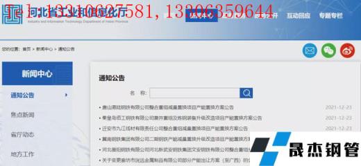 12月22日,河北省工信廳發(fā)布《遷安軋一鋼鐵集團有限公司建設項目產(chǎn)能置換方案公告》。