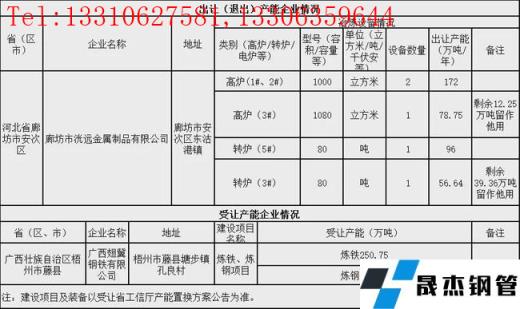 廊坊市洸遠金屬制品有限公司擬出讓(退出)1000m3高爐2座、1080m3高爐1座、80t轉爐2座設備給廣西翅冀鋼鐵有限公司,共計出讓煉鐵產(chǎn)能250.75萬噸,煉鋼產(chǎn)能152.64萬噸。
