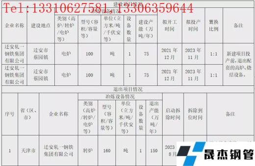 遷安軋一鋼鐵集團有限公司建設項目產(chǎn)能置換方案公告