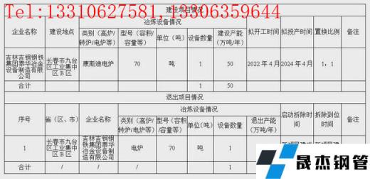 吉林吉鋼鋼鐵集團泰華冶金設備制造有限公司擬于2022年4月在長春市九臺區(qū)工業(yè)集中區(qū)B區(qū)新建70t康斯迪電爐1座,產(chǎn)能50萬噸/年,項目預計2024年4月投產(chǎn)。同時計劃退出70t電爐1座,產(chǎn)能50萬噸/年,預計在新項目投產(chǎn)前拆除。