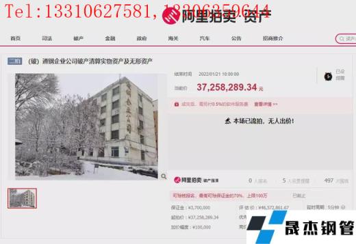近日,阿里拍賣(mài)平臺(tái)發(fā)布通鋼企業(yè)名下房屋建筑物、構(gòu)筑物及其他輔助設(shè)施等資產(chǎn)的拍賣(mài)信息。本次競(jìng)拍時(shí)間為1月20日是繼1月1日后的第二次拍賣(mài),起拍價(jià)格也由之前的4657.28萬(wàn)元降至3725.82萬(wàn)元。