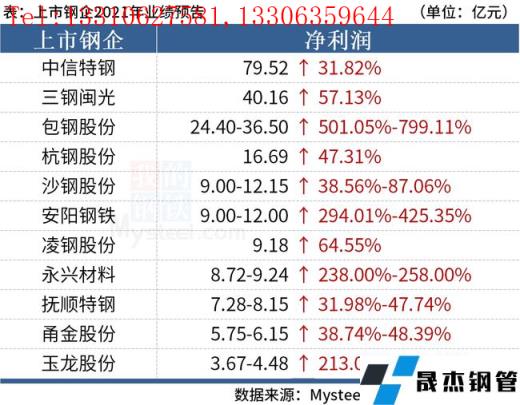 免責(zé)聲明:本網(wǎng)站(山東聊城晟杰無縫鋼管廠www.aremjf.cn)刊載的“2021年鋼企利潤(rùn)創(chuàng)新高,中信特鋼實(shí)現(xiàn)凈利近80億”等均源于網(wǎng)絡(luò),版權(quán)歸原作者所有,且僅代表原作者觀點(diǎn),本文所載信息僅供參考。轉(zhuǎn)載僅為學(xué)習(xí)與交流之目的,如無意中侵犯您的合法權(quán)益,請(qǐng)及時(shí)聯(lián)系刪除。本網(wǎng)站刊登此篇文章并不意味著本站贊同其觀點(diǎn)或證實(shí)其內(nèi)容的真實(shí)性,我們不對(duì)其科學(xué)性、嚴(yán)肅性等作任何形式的保證。如果侵犯了您的版權(quán),請(qǐng)盡快聯(lián)系我們予以撤銷,謝謝合作!