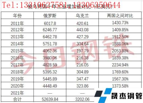 日前,俄羅斯、烏克蘭爆發(fā)沖突,地區(qū)緊張形勢驟然升級!全球的焦點也聚焦到了歐洲俄羅斯、烏克蘭及和周邊的區(qū)域。而所謂的雙方?jīng)_突,實際上就是國力與經(jīng)濟實力的碰撞,是工業(yè)與工業(yè)的對抗,更是兩國之間鋼鐵力量的博弈!筆者對俄羅斯、烏克蘭工業(yè)發(fā)展情況,十年間GDP、粗鋼產(chǎn)量數(shù)據(jù)進行了對比分析,具體情況如下: