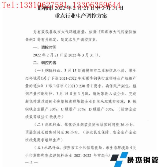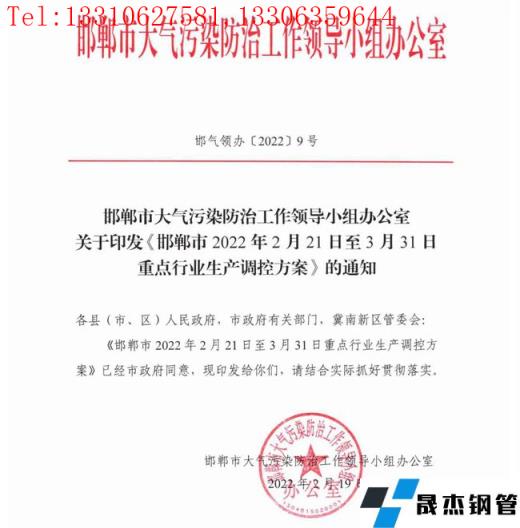 日前,邯鄲市大氣污染防治工作領導小組辦公室印發(fā)了《邯鄲市2022年2月21日至3月31日重點行業(yè)生產調控方案》。方案中對2022年2月21日至3月31日時段內的鋼鐵、焦化、水泥、獨立球團、鑄造、炭素等重點行業(yè)開展停限產措施。