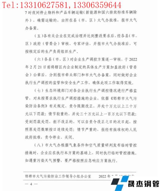 免責聲明:本網站(山東聊城晟杰無縫鋼管廠www.aremjf.cn)刊載的“限產50%!河北一地再發(fā)鋼企限產令!即日起至月底!”等均源于網絡,版權歸原作者所有,且僅代表原作者觀點,本文所載信息僅供參考。轉載僅為學習與交流之目的,如無意中侵犯您的合法權益,請及時聯(lián)系刪除。本網站刊登此篇文章并不意味著本站贊同其觀點或證實其內容的真實性,我們不對其科學性、嚴肅性等作任何形式的保證。如果侵犯了您的版權,請盡快聯(lián)系我們予以撤銷,謝謝合作!