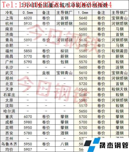 截至3月9日,全國主要城市0.5mm冷軋板卷均價5966元/噸,周環(huán)比上漲59元/噸;1.0mm冷軋板卷均價5708元/噸,周環(huán)比上漲65元/噸。以下為3月4日與3月9日全國重點(diǎn)城市冷軋板卷價格指數(shù)對比情況: