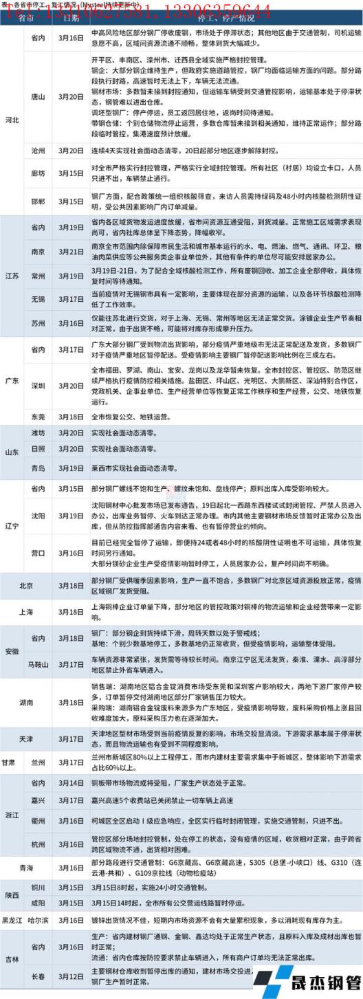 除唐山市鋼鐵企業(yè)外,其他部分地區(qū)鋼企也受到了疫情的影響,為了能夠順利度過疫情難關(guān),個(gè)別鋼企實(shí)行封廠保生產(chǎn),但流通靜止,防止疫情蔓延。近日小編收集到了國內(nèi)16個(gè)省市地區(qū)無縫鋼管廠家停工、停產(chǎn)情況具體內(nèi)容如下: