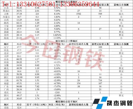 通過以上信息,小編了解到目前全國重點(diǎn)鋼鐵區(qū)域例如唐山大部分鋼企維持生產(chǎn),但因交通管制,無縫鋼管廠家目前出貨面臨運(yùn)輸困難;針對(duì)全國還有一些重點(diǎn)省市無縫鋼管廠家也受到了影響情況如下: