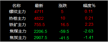 螺紋主力期貨漲5,收報4711,漲幅0.11%;熱卷主力漲10,收報4822,漲幅0.21%;焦煤主力跌59.5,收報2206.5,跌幅2.63%;焦炭主力跌41.5,收報2907.5,跌幅1.41%;鐵礦石主力漲16.5收報755.5,漲幅2.23%。唐山鋼坯昨日穩(wěn),現(xiàn)報4440元/噸,網(wǎng)優(yōu)廢鋼統(tǒng)計21日2漲4跌,今早2漲5跌。