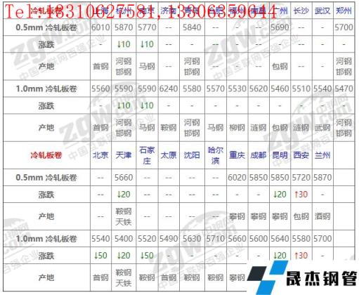 全國23個主要市場1.0mm 冷軋板卷平均價格5597元/噸,較上個交易日下調(diào)7元/噸。