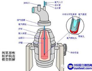 原料:1.鐵水(80%-85%):用封閉保溫的魚(yú)雷罐車(chē)從煉鐵廠運(yùn)來(lái)(以前用敞口鐵水罐);2.廢鋼(15%-20%):事先破碎不攙雜質(zhì)異物。