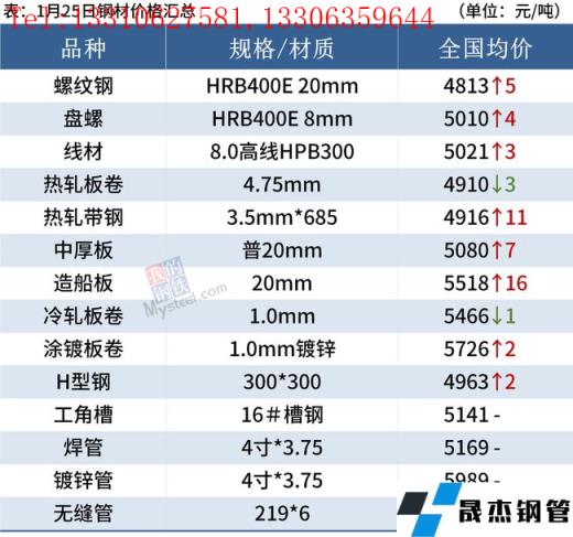中厚板:1月25日,全國24個主要城市20mm普板均價5080元/噸,較上個交易日上漲7元/噸。據(jù)了解,受臨近春節(jié)影響,多地物流車輛減量、運力下降、運費上漲,同時,市場上商戶陸續(xù)放假,成交減量,多地進入有價無市狀態(tài)。受華北地區(qū)部分無縫鋼管廠檢修停產(chǎn)影響,市場節(jié)后預(yù)期較好,多地仍在小幅上調(diào)報價;其他區(qū)域報價以穩(wěn)為主。綜合來看,預(yù)計節(jié)前國內(nèi)中厚板報價短期繼續(xù)盤整運行。