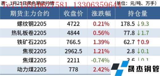 焦炭:1月25日,焦炭市場暫穩(wěn)運行。山西長治地區(qū)今日有環(huán)保部門會議,1月30日-3月13日冬奧會期間,區(qū)域內(nèi)焦企結(jié)焦時間延長至72小時限產(chǎn)政策影響;個別焦企明后兩天,環(huán)保管控結(jié)焦時間將延長至72小時,大部分焦企暫無接到冬奧會相關(guān)限產(chǎn)通知。本周焦企開工小幅上升,焦炭產(chǎn)量增加,下游無縫鋼管廠采購依舊積極,焦炭整體庫存也在低位,出貨無阻。冬奧會臨近,各個地區(qū)無縫鋼管廠限產(chǎn)預(yù)期較強,焦炭需求或有下降,無縫鋼管廠補庫情緒減弱。焦煤價格繼續(xù)維持高位,焦炭成本壓力依然較大,預(yù)計短期內(nèi)焦炭市場繼續(xù)偏穩(wěn)運行,后期需繼續(xù)關(guān)注環(huán)保政策、冬奧會、原料成本對焦炭價格的影響。