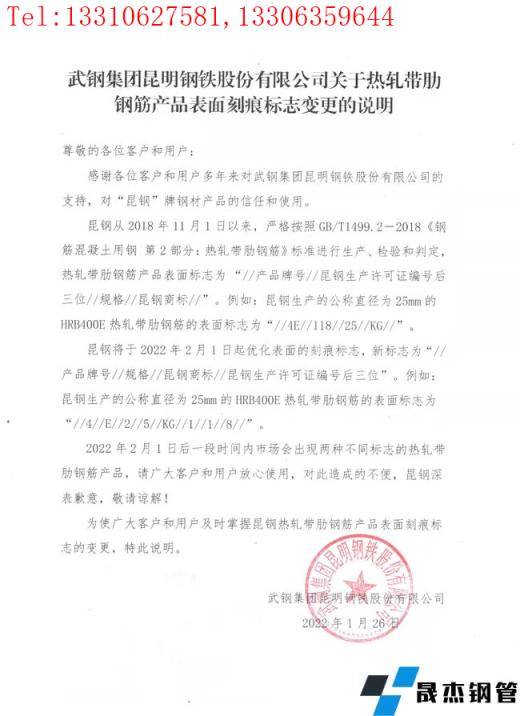 為使廣大客戶和用戶及時掌握昆鋼熱軋帶肋鋼筋產(chǎn)品表面刻痕標(biāo)志的變更,特此說明。