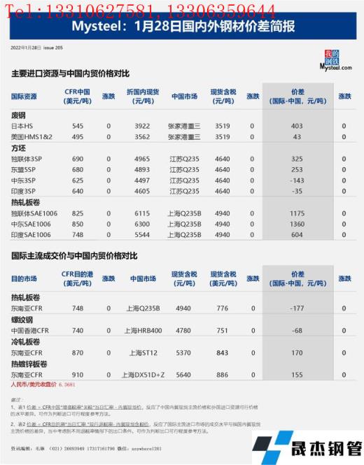免責聲明:本網(wǎng)站(山東聊城晟杰無縫鋼管廠www.aremjf.cn)刊載的“2022年01月28日日報:國內外鋼材_無縫鋼管價差匯總(2022.1.28)”等均源于網(wǎng)絡,版權歸原作者所有,且僅代表原作者觀點,本文所載信息僅供參考。轉載僅為學習與交流之目的,如無意中侵犯您的合法權益,請及時聯(lián)系刪除。本網(wǎng)站刊登此篇文章并不意味著本站贊同其觀點或證實其內容的真實性,我們不對其科學性、嚴肅性等作任何形式的保證。如果侵犯了您的版權,請盡快聯(lián)系我們予以撤銷,謝謝合作!