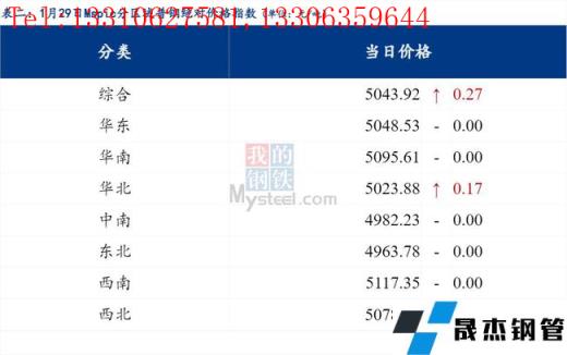 1月29日普鋼絕對價格指數(shù)變化:綜合指數(shù)5043.92,上漲0.27;螺紋鋼指數(shù)4822.65,上漲0.57;線材指數(shù)5154.75,上漲0.28;熱軋板卷指數(shù)4902.32,持平0.0;冷軋板卷指數(shù)5399.03,持平0.0;中厚板指數(shù)5042.38,持平0.0。