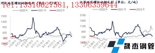 無縫厚壁鋼管廠家利潤方面,截至1月28日,調(diào)研江蘇螺紋噸鋼毛利在260元/噸附近,河北螺紋噸鋼毛利在100元/噸附近,月內(nèi)噸鋼毛利呈現(xiàn)先降后升趨勢,截至當前兩地區(qū)螺紋噸鋼毛利略高于上月同期水平。隨著春節(jié)假期的臨近,下游需求減弱,原料端鐵礦石港口庫存開始降庫,無縫厚壁鋼管廠家節(jié)前補庫規(guī)模不斷擴大,導致原料成本上升較為明顯,上半月無縫厚壁鋼管廠家噸鋼毛利出現(xiàn)回落;但下半月經(jīng)濟數(shù)據(jù)發(fā)布、成材冬儲略超預期,成材生產(chǎn)商看好節(jié)后需求,價格堅挺,噸鋼毛利回升明顯。