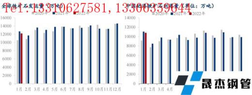 回顧一月鐵礦鐵礦基本面情況,遠端供應鐵礦石發(fā)運量在季末沖量后出現(xiàn)回落,巴西雨季的提前到來也進一步加重了供應端的減量;近端供應則表現(xiàn)相對強勢,由于時間周期影響中國鐵礦石到港量在一月份迎來了短期的高點;國產(chǎn)礦方面,隨著新一年的生產(chǎn)指標充裕以及礦山利潤高企,產(chǎn)量加速恢復,預計1月整體國內(nèi)供應環(huán)比增加416萬噸。需求端來看,1月各地限產(chǎn)放松,無縫厚壁鋼管廠家積極復產(chǎn),整體鐵水產(chǎn)量出現(xiàn)明顯增量,預計1月礦石需求環(huán)比增加約690萬噸,但是由于復產(chǎn)前補庫需求較大,疊加臨近春節(jié)無縫厚壁鋼管廠家需要往廠內(nèi)加大提貨量提高廠內(nèi)庫存,疏港環(huán)比上月增加1004萬噸。體現(xiàn)到庫存端,本月庫存總量(含礦山庫存、無縫厚壁鋼管廠家廠內(nèi)庫存和壓港)增加約276萬噸,較上月累庫幅度收窄124萬噸,其中無縫厚壁鋼管廠家廠內(nèi)庫存增加358萬噸而港口庫存下降325萬噸。