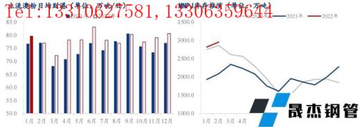 鐵礦石疏港:在無縫厚壁鋼管廠家復產(chǎn)和節(jié)前補庫的支撐下,無縫厚壁鋼管廠家積極往廠內(nèi)提貨,1月疏港大幅增加。截至1月28日,預計統(tǒng)計中國45港1月疏港量9940萬噸,日均疏港環(huán)比增加33.8萬噸/天至320.6萬噸/天,增幅11.2%。本月疏港增量主要集中在華北和華東地區(qū),從1月28日的最新數(shù)據(jù)來看,華北地區(qū)日均疏港已經(jīng)較上月底增加18萬噸/天,華東地區(qū)較上月底增加6萬噸/天。下月來看,一方面春節(jié)期間無縫厚壁鋼管廠家提貨下降,另一方面限產(chǎn)加嚴后抑制部分疏港,整體疏港將會出現(xiàn)明顯減量。