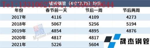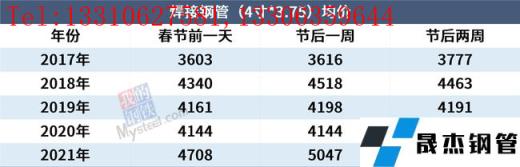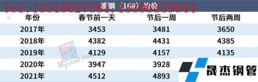 小編匯總近5年春節(jié)后兩周全國主要城市13大品種厚壁無縫鋼管均價(jià)走勢,以供參考。