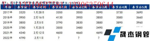 免責聲明:本網站(山東聊城晟杰無縫鋼管廠www.aremjf.cn)刊載的“近5年春節(jié)前后杭州市場價格和庫存走勢”等均源于網絡,版權歸原作者所有,且僅代表原作者觀點,本文所載信息僅供參考。轉載僅為學習與交流之目的,如無意中侵犯您的合法權益,請及時聯系刪除。本網站刊登此篇文章并不意味著本站贊同其觀點或證實其內容的真實性,我們不對其科學性、嚴肅性等作任何形式的保證。如果侵犯了您的版權,請盡快聯系我們予以撤銷,謝謝合作!