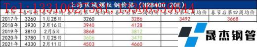 二:近五年上海建筑厚壁無(wú)縫鋼管春節(jié)均價(jià)走勢(shì):