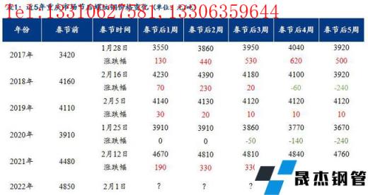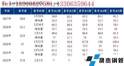 筆者整理了2017-2022年春節(jié)后5周重慶市場(chǎng)主要建材價(jià)格和庫(kù)存情況,由此可見除2020年因公共衛(wèi)生事件影響使得價(jià)格回落,其他幾年重慶市場(chǎng)節(jié)后都是上漲行情,而庫(kù)存方面對(duì)比節(jié)前普遍增加,高峰時(shí)期基本出現(xiàn)節(jié)后3周和4周,今年受限產(chǎn)因素影響疊加短流程無縫厚壁鋼管廠家提前檢修,節(jié)后增量或不及預(yù)期。