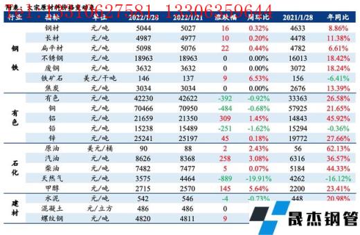 免責(zé)聲明:本網(wǎng)站(山東聊城晟杰無縫鋼管廠www.aremjf.cn)刊載的“大宗原材料價(jià)格周報(bào)(1.24-1.28)”等均源于網(wǎng)絡(luò),版權(quán)歸原作者所有,且僅代表原作者觀點(diǎn),本文所載信息僅供參考。轉(zhuǎn)載僅為學(xué)習(xí)與交流之目的,如無意中侵犯您的合法權(quán)益,請(qǐng)及時(shí)聯(lián)系刪除。本網(wǎng)站刊登此篇文章并不意味著本站贊同其觀點(diǎn)或證實(shí)其內(nèi)容的真實(shí)性,我們不對(duì)其科學(xué)性、嚴(yán)肅性等作任何形式的保證。如果侵犯了您的版權(quán),請(qǐng)盡快聯(lián)系我們予以撤銷,謝謝合作!