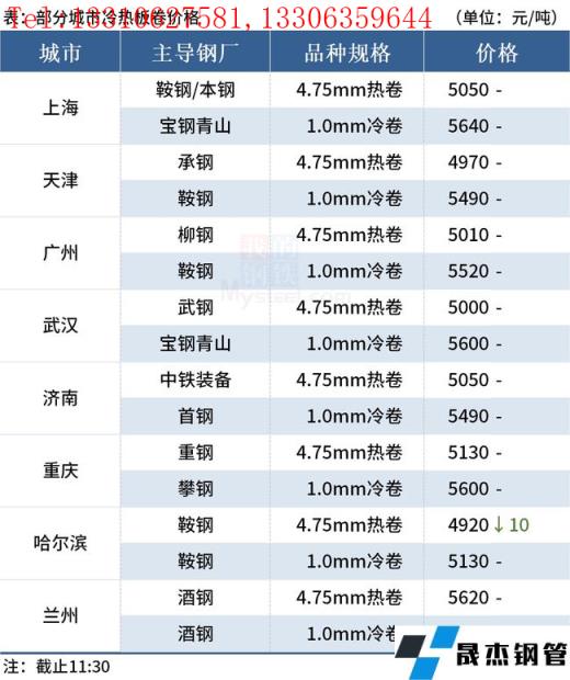 ◎樂從:10日早盤熱卷市場(chǎng)價(jià)格暫穩(wěn),4.75以上普柳燕5010-5020,2.75普5050-5200錳5200-5220。(單位:元/噸)