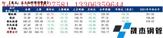 消費(fèi)方面,本周五大品種周消費(fèi)量增至567.5萬噸,環(huán)比上周增加7.35萬噸,增幅1%。其中建材環(huán)比增加44.57萬噸,增幅50%,板材環(huán)比減少37.22萬噸,降幅8%。