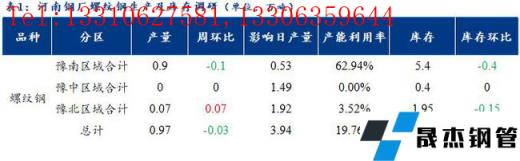1、調(diào)研數(shù)據(jù)顯示,統(tǒng)計的河南地區(qū)10家建筑厚壁無縫鋼管樣本無縫厚壁鋼管廠家中,河南省建材無縫厚壁鋼管廠家螺紋鋼日產(chǎn)量0.97萬噸;檢修/限產(chǎn)影響建材日產(chǎn)量為3.94萬噸,產(chǎn)能利用率為19.76%,較上周下降0.61%。