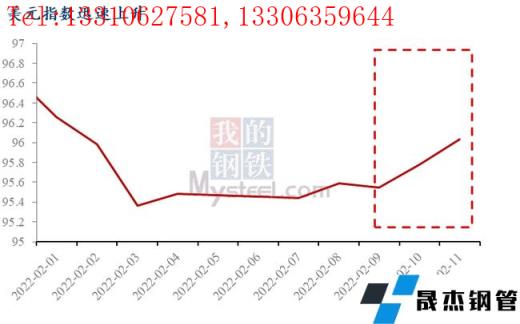 2022年2月11日,美國1月CPI指數(shù)出爐,同比增長7.5%,創(chuàng)40年新高。數(shù)據(jù)出爐后,美聯(lián)儲官員鷹派發(fā)聲更為強(qiáng)烈。美國圣路易斯聯(lián)儲主席布拉德公開表示:希望美聯(lián)儲在7月前加息100個基點(diǎn),并在3月加息50個基點(diǎn),當(dāng)日,美元指數(shù)迅速上升至96點(diǎn)。