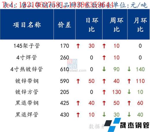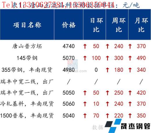 今日唐山管帶價(jià)格趨穩(wěn)運(yùn)行,其中355帶鋼穩(wěn),145帶鋼較昨日漲100元/噸,焊管、鍍鋅管價(jià)格穩(wěn)。355帶鋼市場價(jià)格先漲后跌,較昨日整體趨穩(wěn)運(yùn)行。受今日黑色系期貨沖高回落影響,市場心態(tài)發(fā)生變化,對價(jià)格偏觀望,謹(jǐn)慎操作為主,成交清淡。