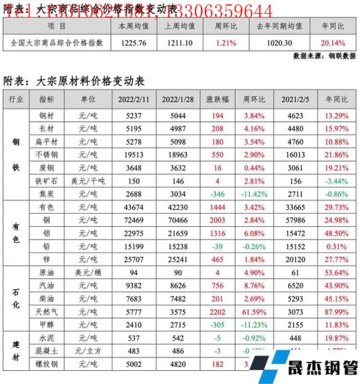 免責(zé)聲明:本網(wǎng)站(山東聊城晟杰無縫鋼管廠www.aremjf.cn)刊載的“MRI:大宗原材料價格周報(2月7日-2月11日)”等均源于網(wǎng)絡(luò),版權(quán)歸原作者所有,且僅代表原作者觀點,本文所載信息僅供參考。轉(zhuǎn)載僅為學(xué)習(xí)與交流之目的,如無意中侵犯您的合法權(quán)益,請及時聯(lián)系刪除。本網(wǎng)站刊登此篇文章并不意味著本站贊同其觀點或證實其內(nèi)容的真實性,我們不對其科學(xué)性、嚴(yán)肅性等作任何形式的保證。如果侵犯了您的版權(quán),請盡快聯(lián)系我們予以撤銷,謝謝合作!