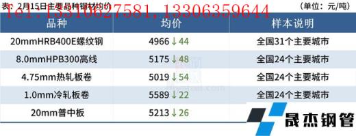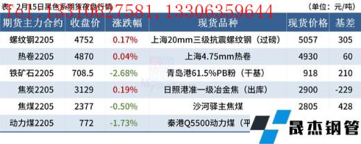 ◎ 2月15日,焦炭市場(chǎng)弱穩(wěn)運(yùn)行,唐山個(gè)別無(wú)縫厚壁鋼管廠家焦炭提降200元/噸,主流地區(qū)暫無(wú)回應(yīng),市場(chǎng)多觀望為主。