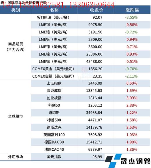 ◎ 湖南省工信廳正式發(fā)布《湖南省冶金行業(yè)“十四五”發(fā)展規(guī)劃》提出,到2025年,研發(fā)一批高附加值厚壁無(wú)縫鋼管新產(chǎn)品,高效品種鋼占比達(dá)到65%;培育形成1家世界500強(qiáng)現(xiàn)代化鋼鐵企業(yè);建立規(guī)范有序的多元化廢鋼資源保障體系,力爭(zhēng)到2025年,湖南省鋼鐵工業(yè)的廢鋼比達(dá)到30%,全省冶金行業(yè)實(shí)現(xiàn)主營(yíng)業(yè)務(wù)收入3000億元以上。