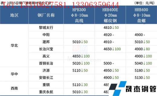 ◎ 2月15日唐山遷安地區(qū)普方坯資源出廠含稅下調(diào)50元/噸,報(bào)4650元/噸。