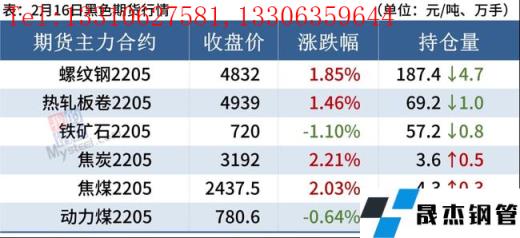 熱軋板卷:2月16日,全國24個主要城市4.75mm熱軋板卷均價5028元/噸,較上個交易日上漲9元/噸。早盤維穩(wěn),現(xiàn)貨報價部分地區(qū)補跌,成交表現(xiàn)偏弱,午后期卷上漲,下游采購量稍有好轉(zhuǎn),全天成交一般。綜合來看,目前冬奧會正在舉行,全國兩會等也即將召開,在無縫厚壁鋼管廠家限產(chǎn)擾動下熱卷產(chǎn)量下降,壓縮熱卷現(xiàn)貨供應(yīng),低供應(yīng)格局給予卷價一定支撐。但后市需要關(guān)注冬奧會后,供應(yīng)是否會出現(xiàn)階段性回升,并且月底前需求沒有如期兌現(xiàn),屆時供需矛盾將會凸顯。綜合來看,預(yù)計17日熱軋板卷價格或震蕩偏強為主。
