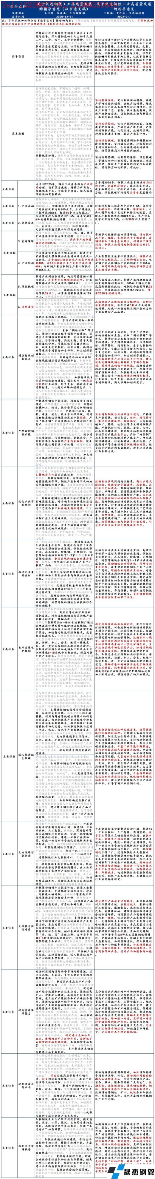 對(duì)于《指導(dǎo)意見》的理解,首先要明確的是,《指導(dǎo)意見》是在2020年12月31日工信部發(fā)布的《關(guān)于推動(dòng)鋼鐵工業(yè)高質(zhì)量發(fā)展的指導(dǎo)意見(征求意見稿)》(以下簡(jiǎn)稱《征求稿》)的基礎(chǔ)上,經(jīng)過一年多時(shí)間收集業(yè)內(nèi)專家學(xué)者、各地鋼鐵行業(yè)協(xié)會(huì)、主要無縫厚壁鋼管廠家等反饋內(nèi)容,并結(jié)合《“十四五”原材料工業(yè)發(fā)展規(guī)劃》(以下簡(jiǎn)稱《原材料規(guī)劃》)以及《“十四五”節(jié)能減排綜合工作方案》(以下簡(jiǎn)稱《節(jié)能減排》)內(nèi)鋼鐵行業(yè)相關(guān)條例整合而成的,對(duì)于目前的中國(guó)鋼鐵行業(yè)而言,《指導(dǎo)意見》具有“錨定”的重要地位。