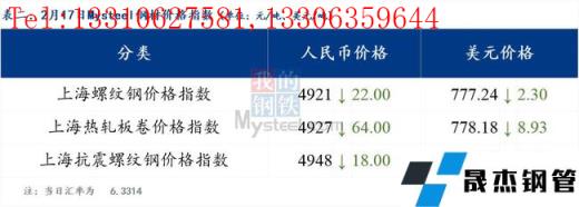 分地區(qū)方面,上海螺紋鋼價格指數(shù)4921,下跌22.0;上海熱軋板卷價格指數(shù)4927,下跌64.0。(單位:元/噸)
