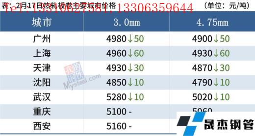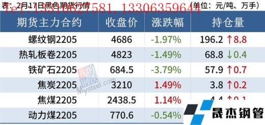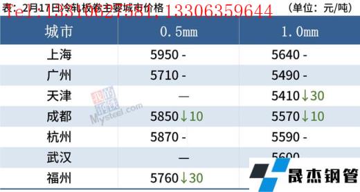 冷軋板卷:2月17日,全國(guó)24個(gè)主要城市1.0mm冷卷均價(jià)5573元/噸,較上個(gè)交易日下跌7元/噸。今日黑色系期貨盤面整體震蕩偏弱運(yùn)行,市場(chǎng)心態(tài)下滑,近兩日現(xiàn)貨市場(chǎng)價(jià)格均陸續(xù)回落,再加上市場(chǎng)“買漲不買跌”的情緒居高不下,今日整體成交一般。庫(kù)存方面,據(jù)不完全統(tǒng)計(jì),現(xiàn)冷軋無縫厚壁鋼管廠家?guī)齑?0.94萬噸,周環(huán)比減少2.77萬噸,社會(huì)庫(kù)存142.03萬噸,周環(huán)比增加2.86萬噸,周消費(fèi)量80.71萬噸,環(huán)比增加13.02萬噸。綜合來看,故預(yù)計(jì)18日國(guó)內(nèi)冷軋板卷價(jià)格或?qū)⒎€(wěn)中偏弱運(yùn)行。