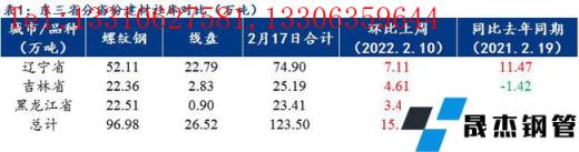 本周東三省建筑厚壁無(wú)縫鋼管現(xiàn)貨庫(kù)存整體較上周增加15.16萬(wàn)噸,相比上周37.40%的增速本周明顯放緩,其中螺紋鋼現(xiàn)貨庫(kù)存96.98萬(wàn)噸,線盤26.52萬(wàn)噸,建材社會(huì)庫(kù)存總量為123.50萬(wàn)噸,較上周增15.16萬(wàn)噸,增幅13.99%。相比春節(jié)期間累庫(kù)較多,本周東北區(qū)域內(nèi)建材現(xiàn)貨增加不多,各市場(chǎng)倉(cāng)庫(kù)到貨一般。