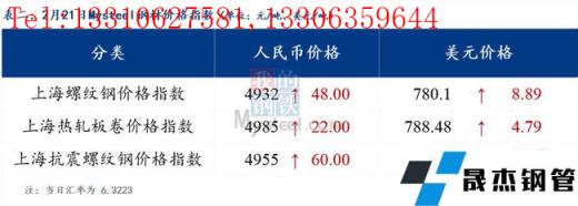 分地區(qū)方面,上海螺紋鋼價(jià)格指數(shù)4932,上漲48.0;上海熱軋板卷價(jià)格指數(shù)4985,上漲22.0。(單位:元/噸)