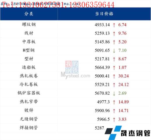 2月21日普鋼絕對(duì)價(jià)格指數(shù)變化:綜合指數(shù)5153.74,上漲14.05;螺紋鋼指數(shù)4933.14,上漲6.74;線材指數(shù)5259.13,上漲9.76;熱軋板卷指數(shù)5000.41,上漲30.24;冷軋板卷指數(shù)5529.21,上漲24.12;中厚板指數(shù)5145.86,上漲5.2。