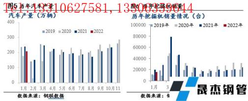 厚壁無(wú)縫鋼管方面,1月厚壁無(wú)縫鋼管進(jìn)入消費(fèi)淡季,但在厚壁無(wú)縫鋼管低庫(kù)存和經(jīng)濟(jì)穩(wěn)增長(zhǎng)預(yù)期下,價(jià)格震蕩運(yùn)行。1月有色金屬產(chǎn)量環(huán)比小幅下降。需求端有所分化,房地產(chǎn)行業(yè)信貸政策回暖,但1月戶外施工逐漸減少,以南方存量施工為主;汽車(chē)行業(yè)1月進(jìn)入生產(chǎn)淡季,疊加春節(jié)影響,產(chǎn)量環(huán)比大幅下降;工程機(jī)械1月銷(xiāo)量降幅收窄,但國(guó)內(nèi)消費(fèi)降幅繼續(xù)擴(kuò)大,出口銷(xiāo)量超預(yù)期“穩(wěn)增長(zhǎng)”;家電方面,1月份空調(diào)產(chǎn)量環(huán)比小幅增長(zhǎng)。整體看,1月下游消費(fèi)進(jìn)入季節(jié)性淡季,但原材料供應(yīng)相對(duì)穩(wěn)定。