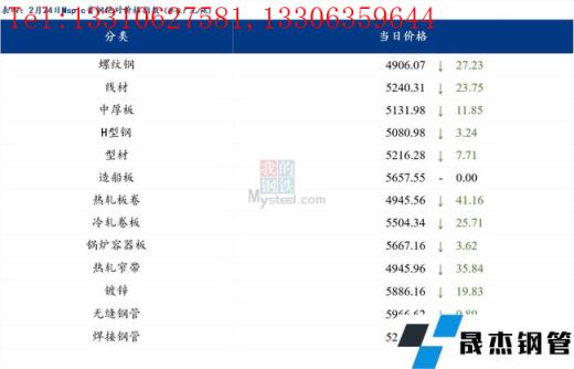 2月24日普鋼絕對(duì)價(jià)格指數(shù)變化:綜合指數(shù)5127.14,下跌26.07;螺紋鋼指數(shù)4906.07,下跌27.23;線材指數(shù)5240.31,下跌23.75;熱軋板卷指數(shù)4945.56,下跌41.16;冷軋板卷指數(shù)5504.34,下跌25.71;中厚板指數(shù)5131.98,下跌11.85。