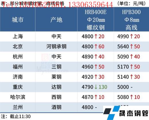 ◎上海:1日早盤建材市場(chǎng)價(jià)格小幅上漲20-30。現(xiàn)螺紋4730-4770,西城抗震4770,其他4630-4690,興鑫抗震4700,聯(lián)鑫黃??拐?710,盤螺4880-4990,高線亞新4790。(單位:元/噸)