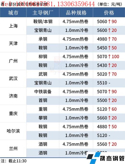 ◎濟(jì)南:1日早盤熱卷市場(chǎng)價(jià)格漲90,現(xiàn)中鐵4.75mm普卷報(bào)5070,低合金市場(chǎng)缺貨報(bào)價(jià)5260,部分規(guī)格貨少。(單位:元/噸)