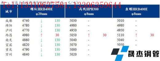 從川渝主要城市建筑厚壁無縫鋼管價格來看,西昌市場價格上漲30元/噸,而成都、綿陽、瀘州、南充、宜賓、重慶、萬州市場因計重方式調(diào)整,螺紋鋼價格由過磅改為理計,故下浮相對較大。